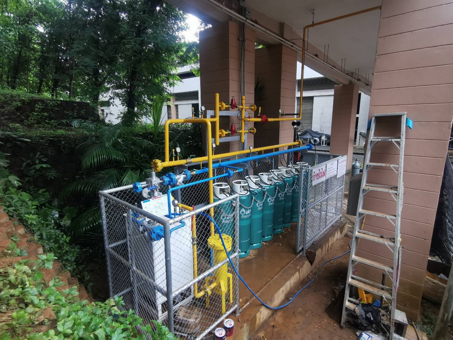 - ระบบห้องเก็บถังก๊าซภายนอก (Gas Cylinder Station – Gas Safety Zone)